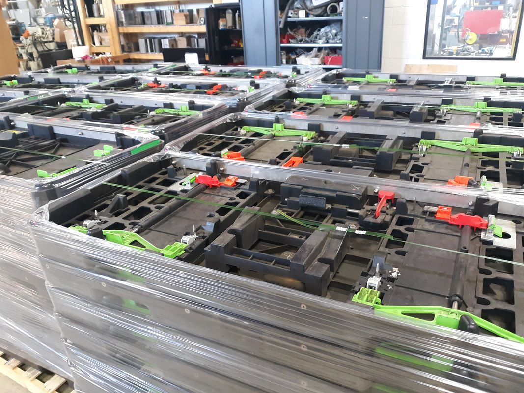 Complex seat pallet assembly's are conducted on specially constructed assembly fixtures built for the specific program. All pins, slides, locks, nuts, bolts, and stops are triple checked for tightness and accuracy. Ergonomic considerations are always considered in the case of sliding locks and hold downs.